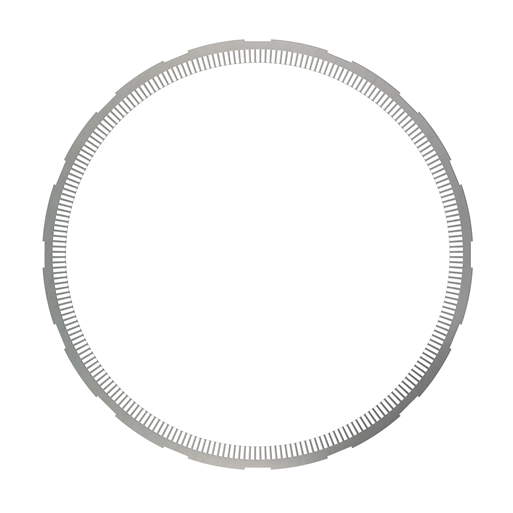 The outer diameter of 1250mm is the largest punching sheet we produce. For the design of the large size motors, in order to offset the tooth harmonics during the operation of the motor, the slots of the stator core or rotor core are often designed to be skewed.